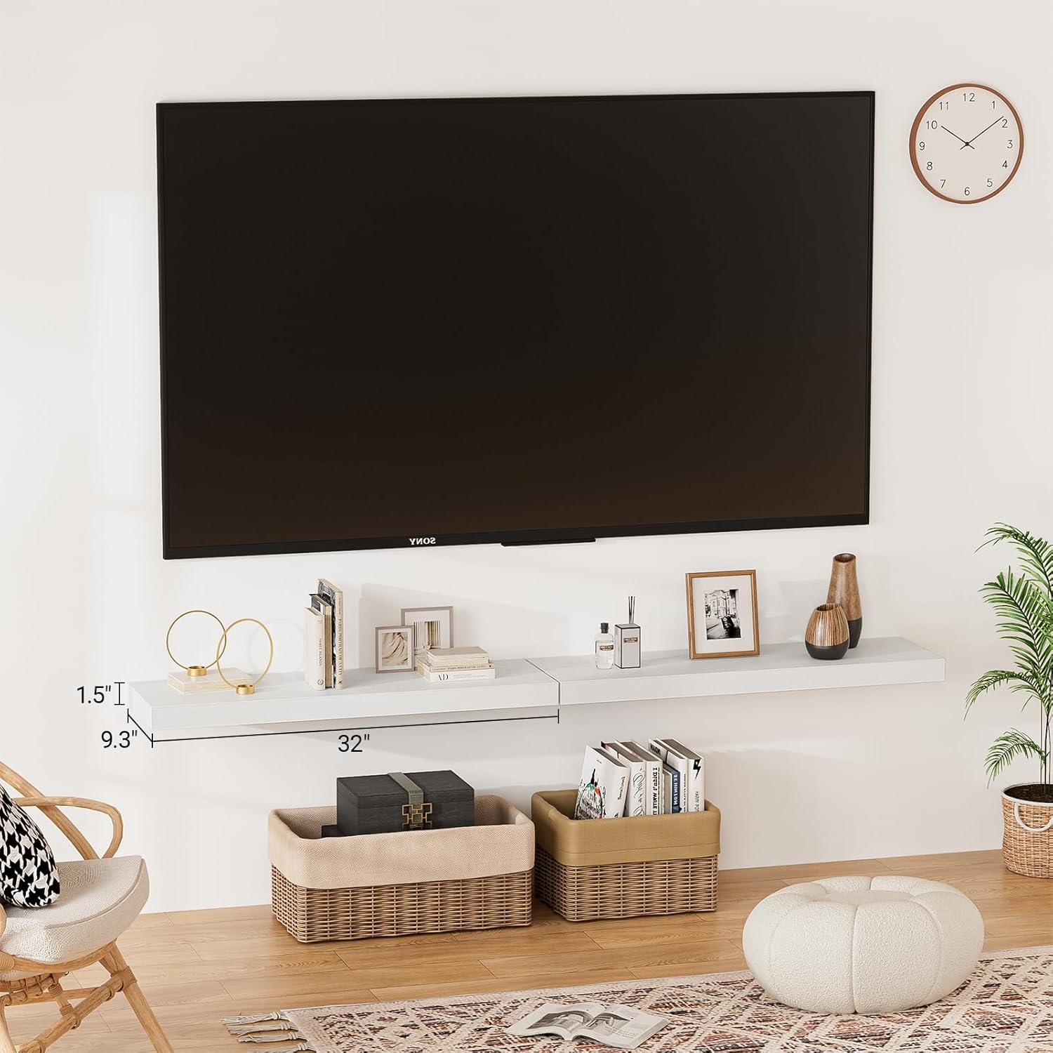 - ăLonger DesignăOur pretty 32 inch white wall shelves are 32"W x 9.3"D x 1.5"H.Our 32 floating shelves is longer than traditional designs and can hold more items.The white floating shelf optimize wall space,helping organize essentials without taking up floor space in your home.