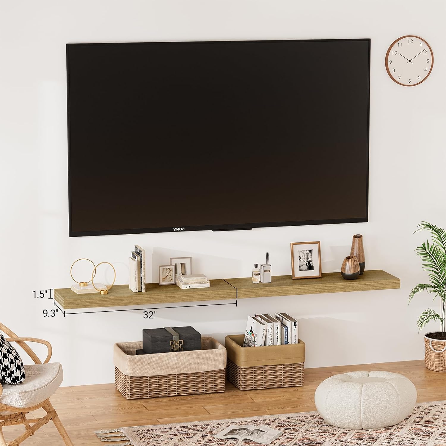 - ăLonger DesignăOur pretty 32 inch wall shelves are 32"W x 9.3"D x 1.5"H.Our 32 floating shelves is longer than traditional designs and can hold more items.The white oak floating shelves optimize wall space,helping organize essentials without taking up floor space in your home.