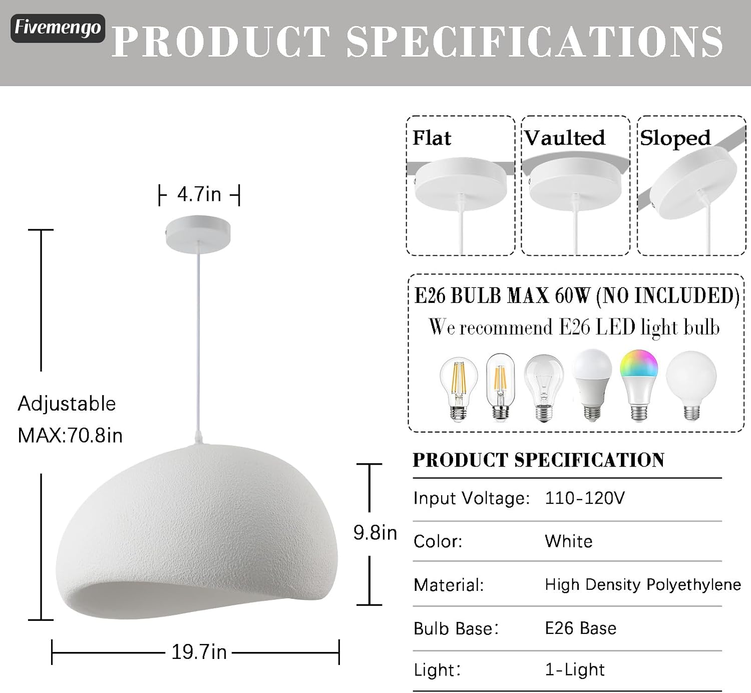 - DESIGN: Modern Japanese Wabi Sabi pendant light featuring an elegant white high-density polystyrene lampshade with minimalist aesthetics