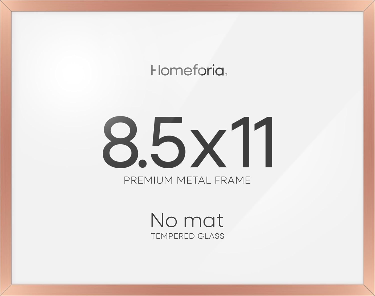 Homeforia 8.5x11 Diploma Frame Rose Gold, High End Metal 8.5 x 11 Certificate Frames, 11x8.5 Document Frames for Wall or Tabletop, 8.5 by 11 Award Letter Size Frame, Tempered Glass, Wall Kit, Set of 1
