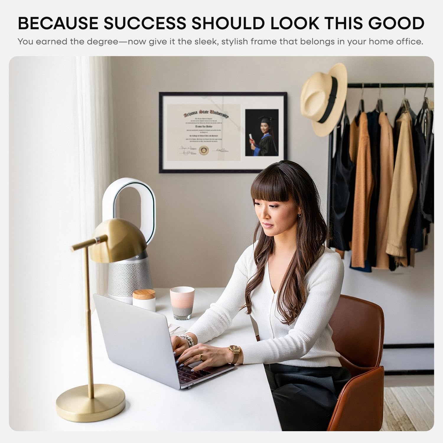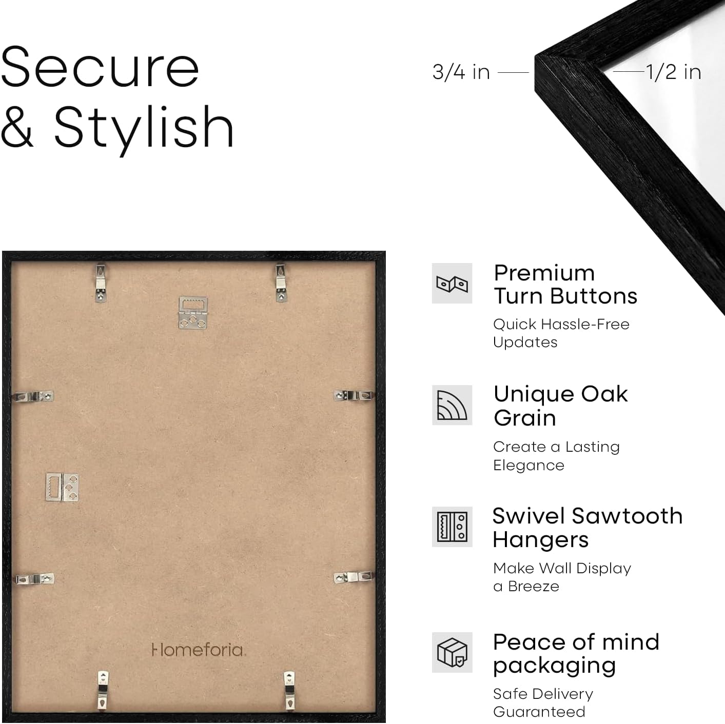 Homeforia 11x18 Black Diploma Frame with Photo, High End Oak 11 x 18 Certificate Wood Frame with Mat 8.5x11 Diploma and 5x7 Picture, 11 by 18 Wooden Document Frames, Tempered Glass, Wall Kit, Set of 1