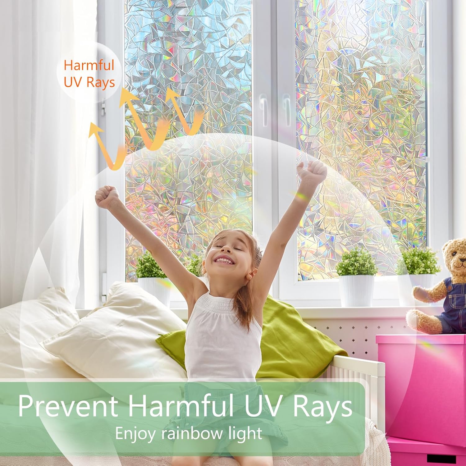 - PRIVACY PROTECTION: HIDBEA rainbow window film can provide 24h privacy to block unwanted prying eyes from outside and no one can see in, the effect of privacy can up to 95% without losing any natural light, which can help you live in a comfortable and safe place.