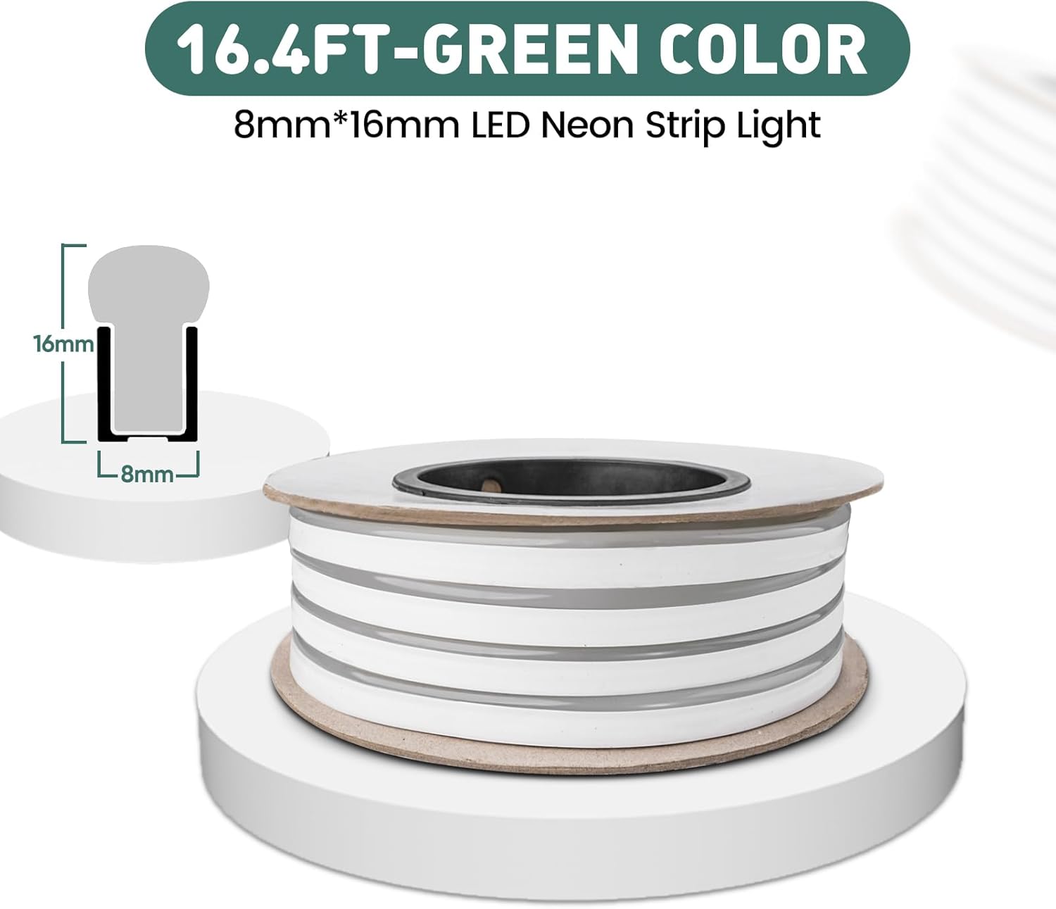 GZBtech Flexible LED Neon Rope Lights 16.4FT,AC 110-120V Waterproof Strip Light, 120 LEDs/M Cuttable Connectable Neon Lighting for Indoor Outdoor Home Decor/Commercial Building Use-Green 5M