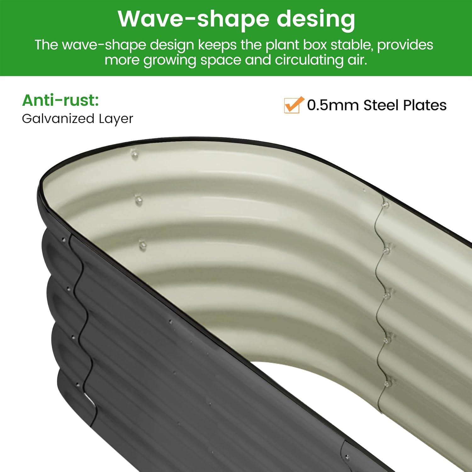 - π³ Unmatched Stability: Crafted with 0.5mm thick overlapping galvanized panels, reaching up to 1.8mm at the seams, our raised garden bed provides excellent strength and stability. The integrated screw fastening edge and unique oval form ensure it remains solid and secure, even when fully planted.