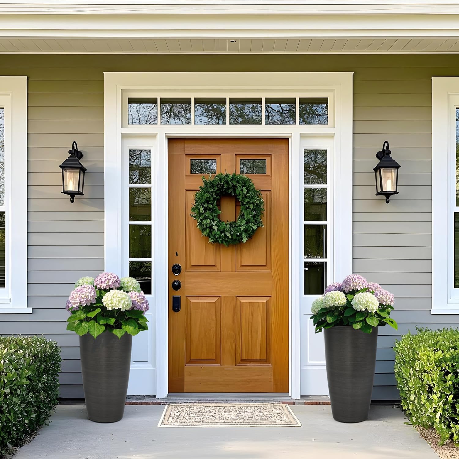 - ALL-WEATHER RESISTANT: Made from high-density resin treated with UV inhibitors, these large flower pots are built to resist fading, impact, cracks, and frost, ensuring reliable performance in all seasons.