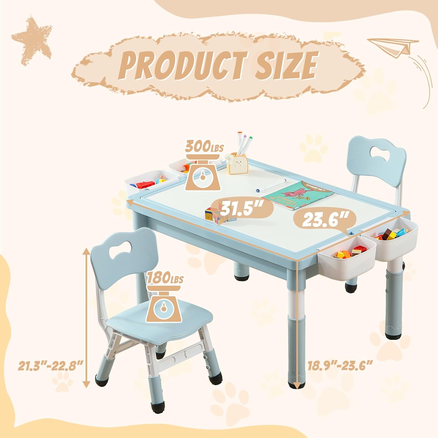- Our toddler table can serve as a children's dining table, activity table, toy storage table, or study table for all kinds of daily activities. Assembly is a breeze, and with its smooth surface and easy - to - clean materials, this multi - functional kids' table and chairs set is a snap to maintain and clean. Plus, it's way easier to carry and move around compared to those bulky kids' wooden tables and chairs!