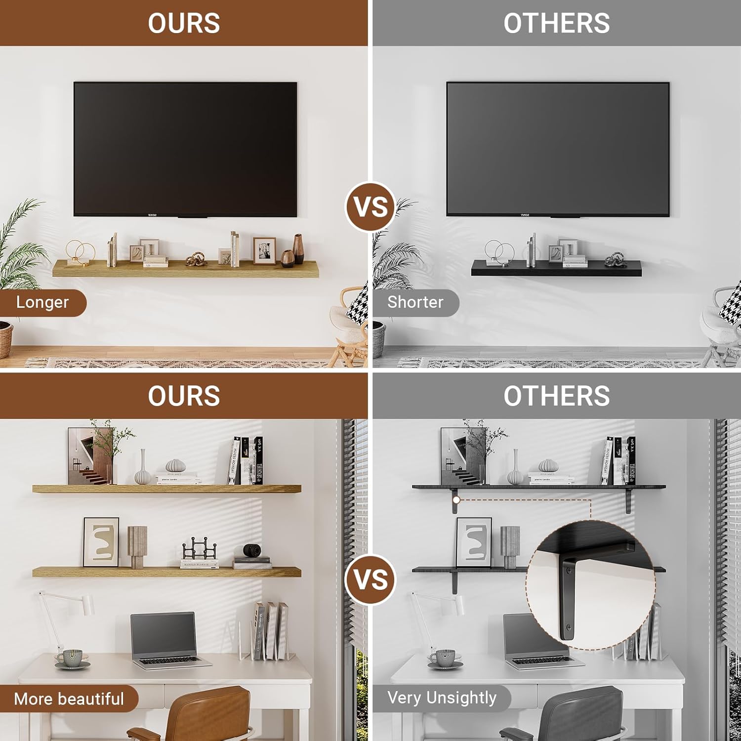 - ăEasy to InstallăOur long wall shelf can be easily installed in minutes with the installation manual.Convenient to wipe and easy to maintain.This deep floating shelves for wall is also an ideal gift for family and friends.