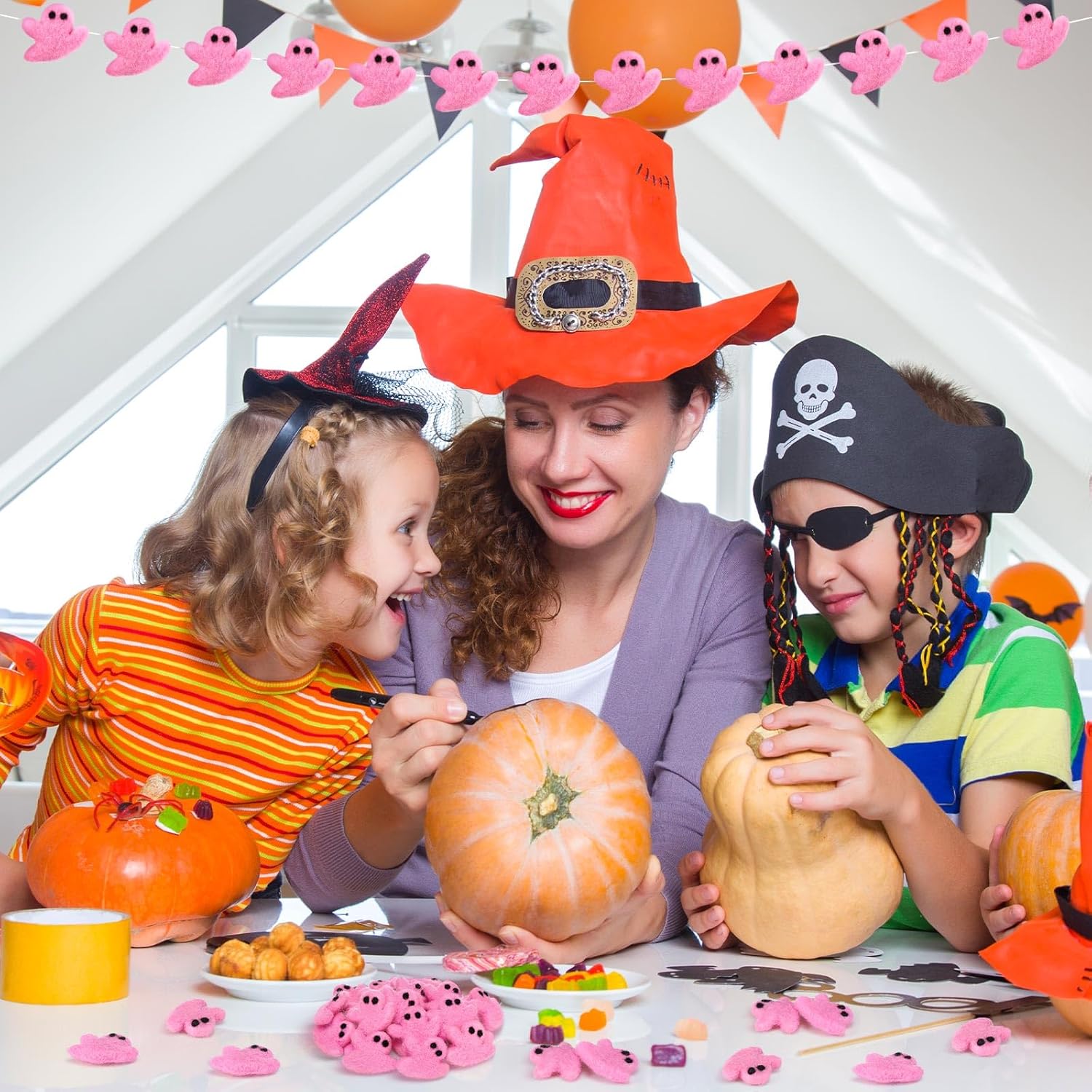 24 Pcs Halloween Felt Ghosts Wool Felted DIY Ornament Ghost for Halloween Party Decoration Home Indoor Outdoor Supplies(Pink)