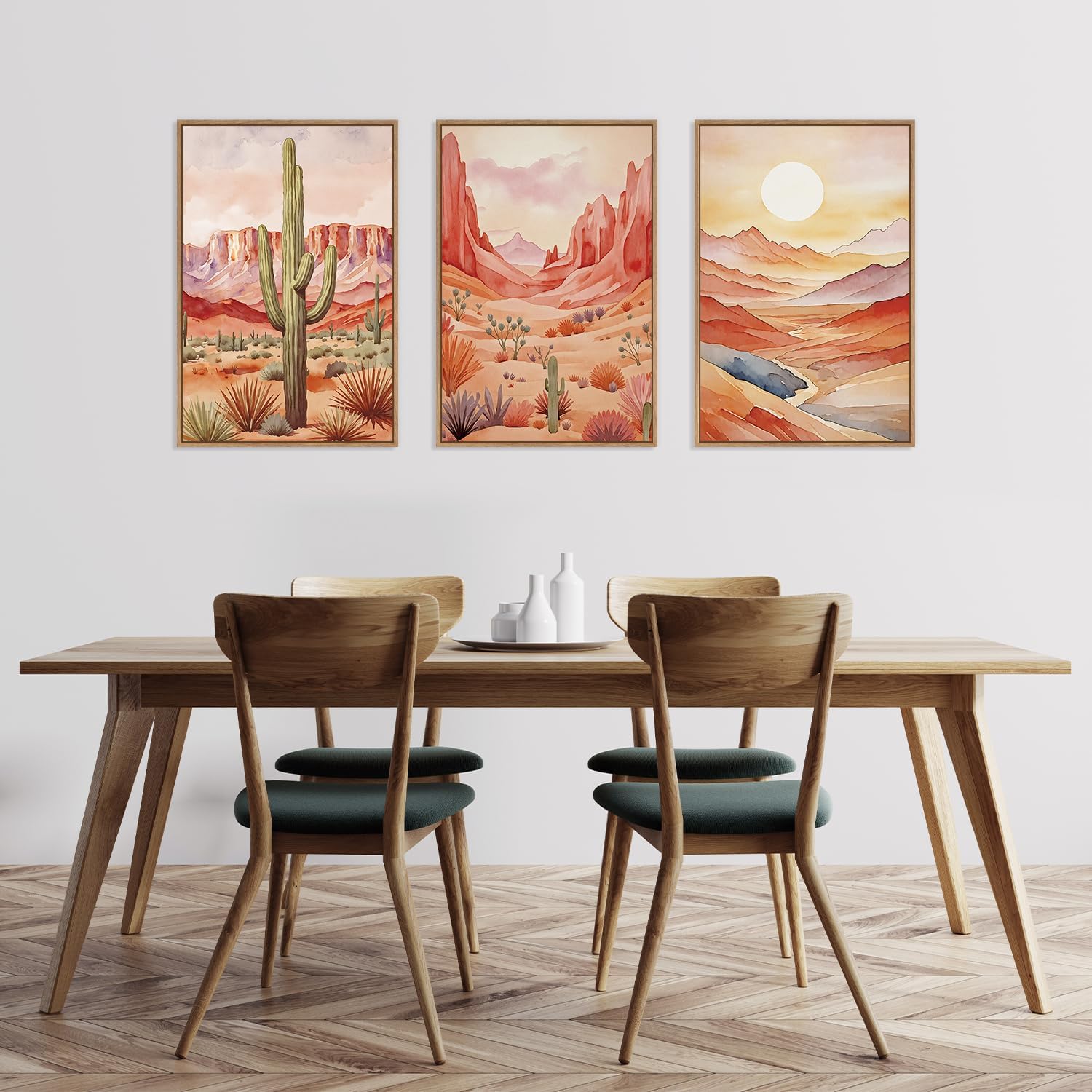 - 【Versatile Decor】This Bohemian Desert Wall Decor set can be hung in a variety of settings such as offices, bedrooms, bathrooms, living rooms, dining rooms, kitchens, porches and more, making it ideal for enhancing the decor of a space. It adds a unique southwestern landscape element that creates a warm and stylish atmosphere.