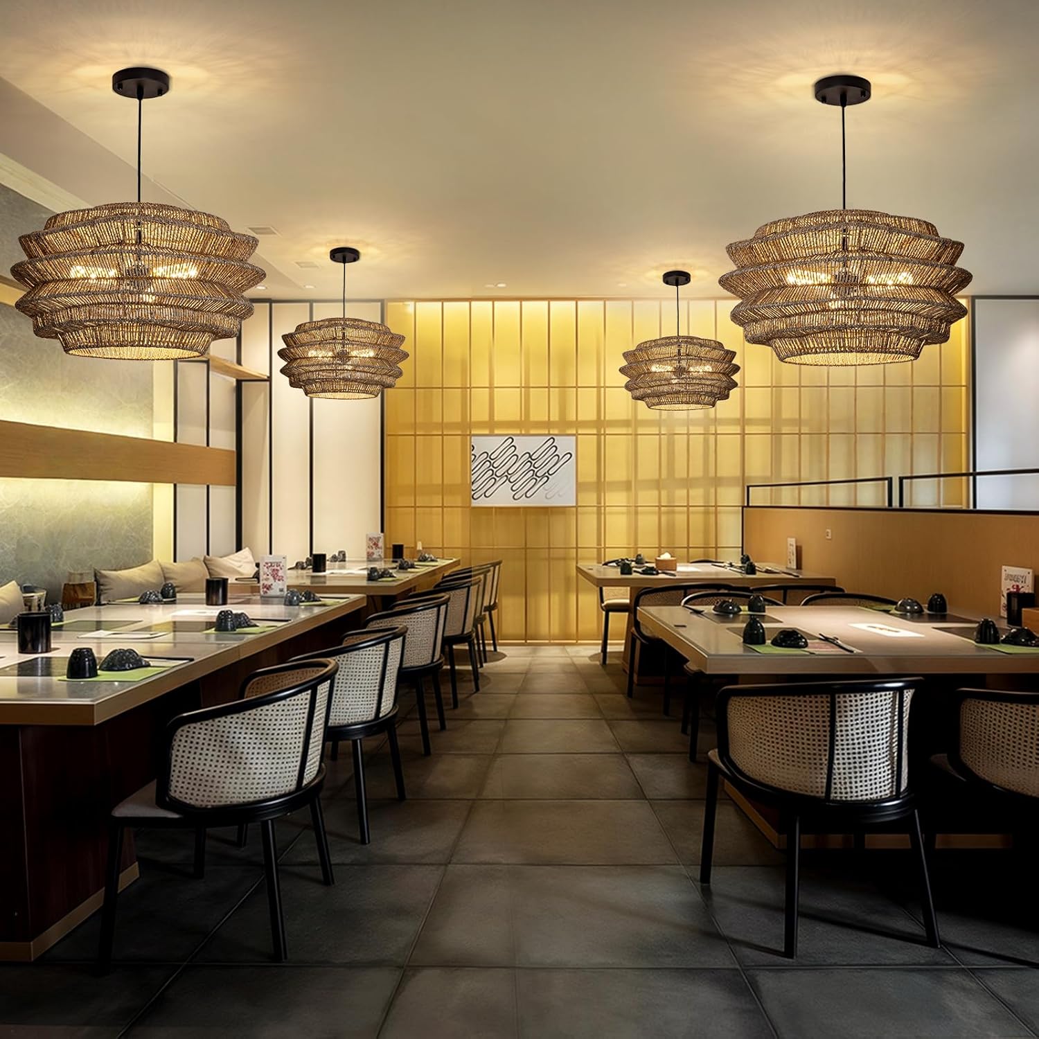 - Notes 1. Natural Materials Our products are made of high-quality bamboo, rattan, and straw rope Since these materials are natural materials, the following conditions may exist: bamboo knots, tiny burrs, slight color differences, micro scars, etc During the use of lamps, the color will change slightly over time, which is a natural change