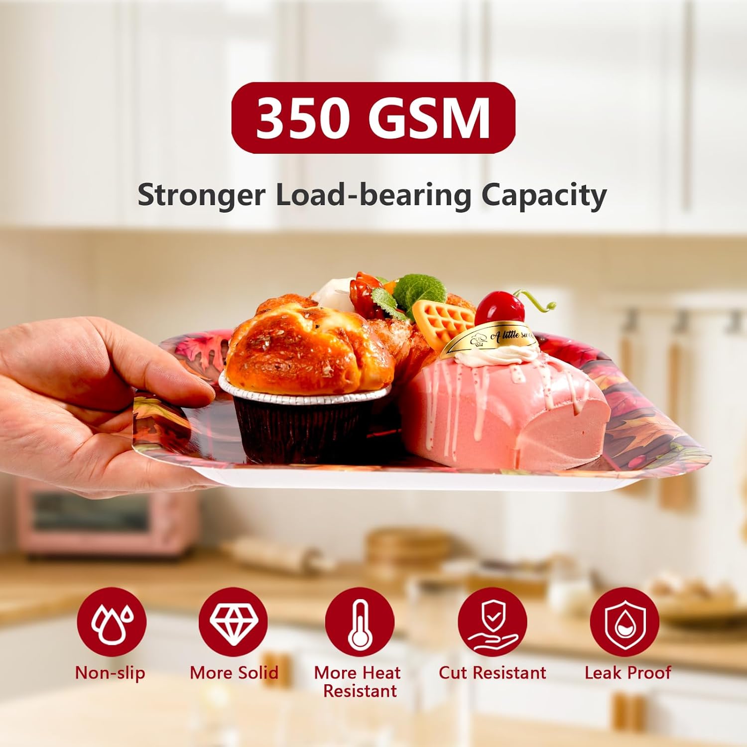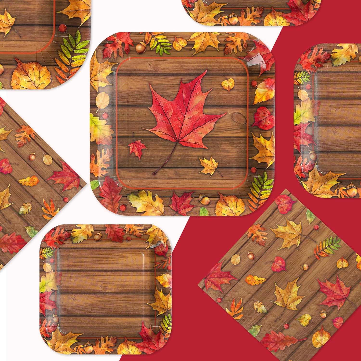 - 【Premium Material】The square fall party disposable plates are made of heavy duty paper. fall leaf dessert paper plates are designed to be strong enough to hold a full plate of food without folding and tearing. Napkins are soft and absorbent. Napkins are 3-layered thick to ensure durability. Will match well with other festival such as summer aloha tropical tableware to add a pop of color to your party decor. (Notes: Do NOT place the plates in the microwave.)