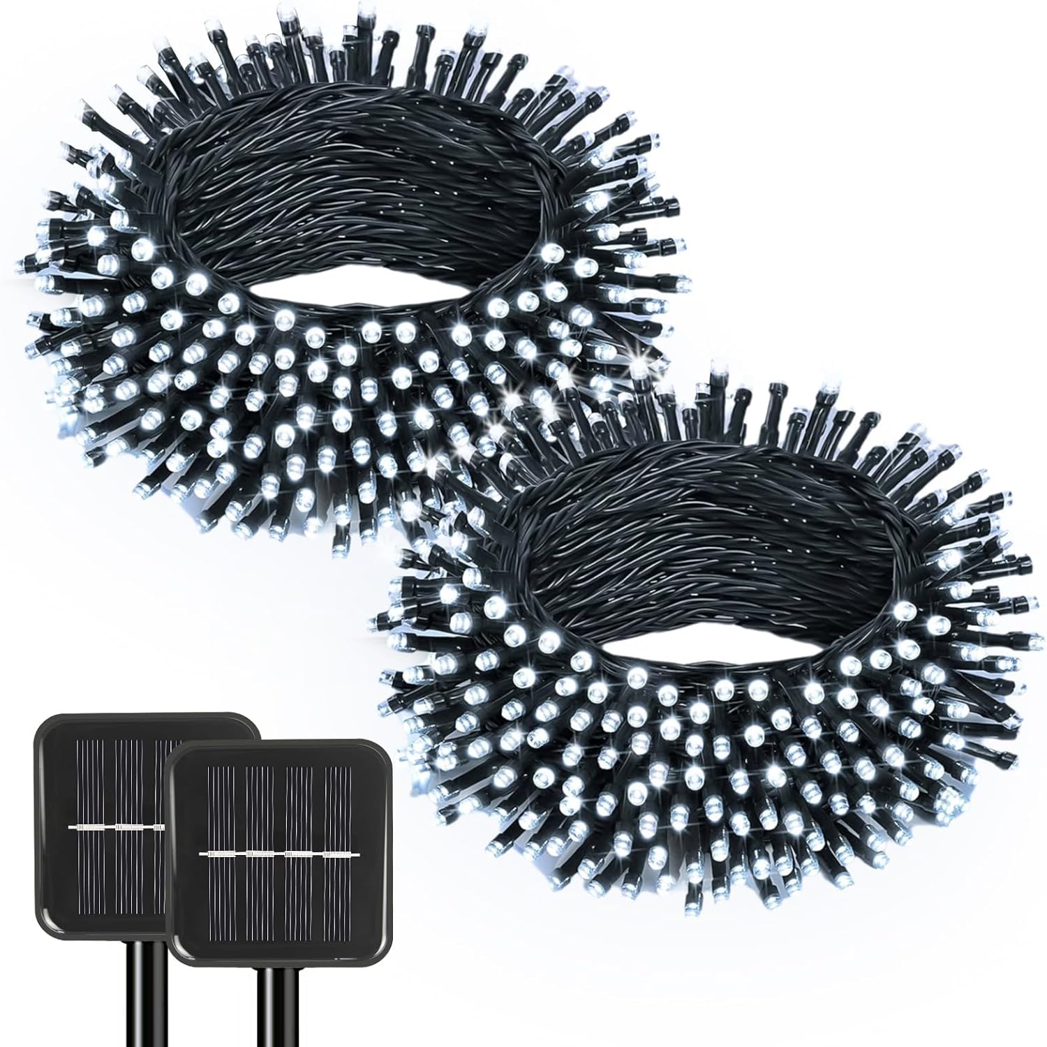 2 Pack Solar String Lights Outdoor, 200 LED Extra-Long 78Ft Solar Lights Outdoor with 8 Lighting Modes, IP65 Waterproof for Garden, Patio, Xmas, Balcony, Tree, Wedding, Party Decor (White)