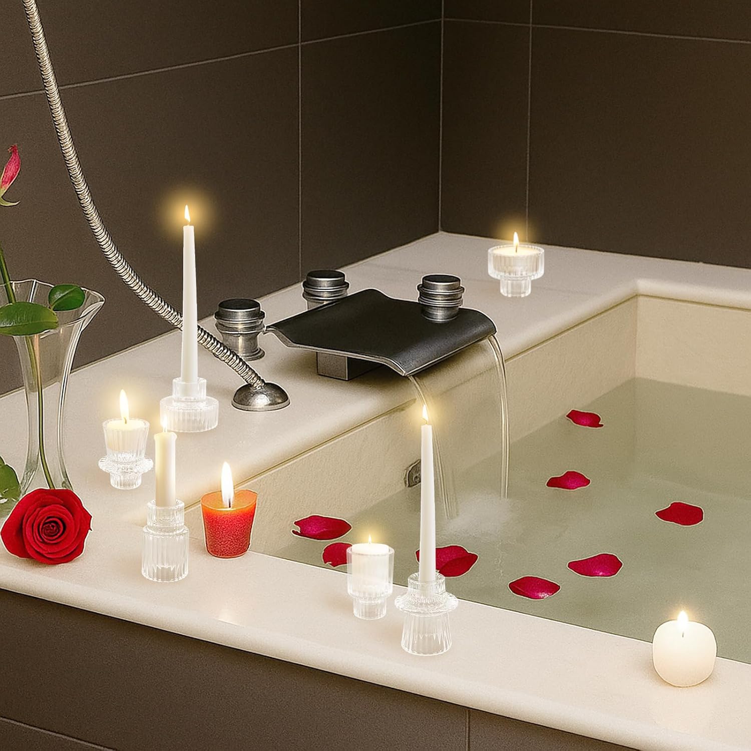 - VERSATILITY CANDLESTICK HOLDERS: Perfect as elegant table centerpieces, charming additions to your mantle display, or serene windowsill accents. These glass taper candleholders enhance ambiance for dinners, parties, or everyday relaxation. Their timeless glass crystal candle holder design seamlessly integrates into diverse settings