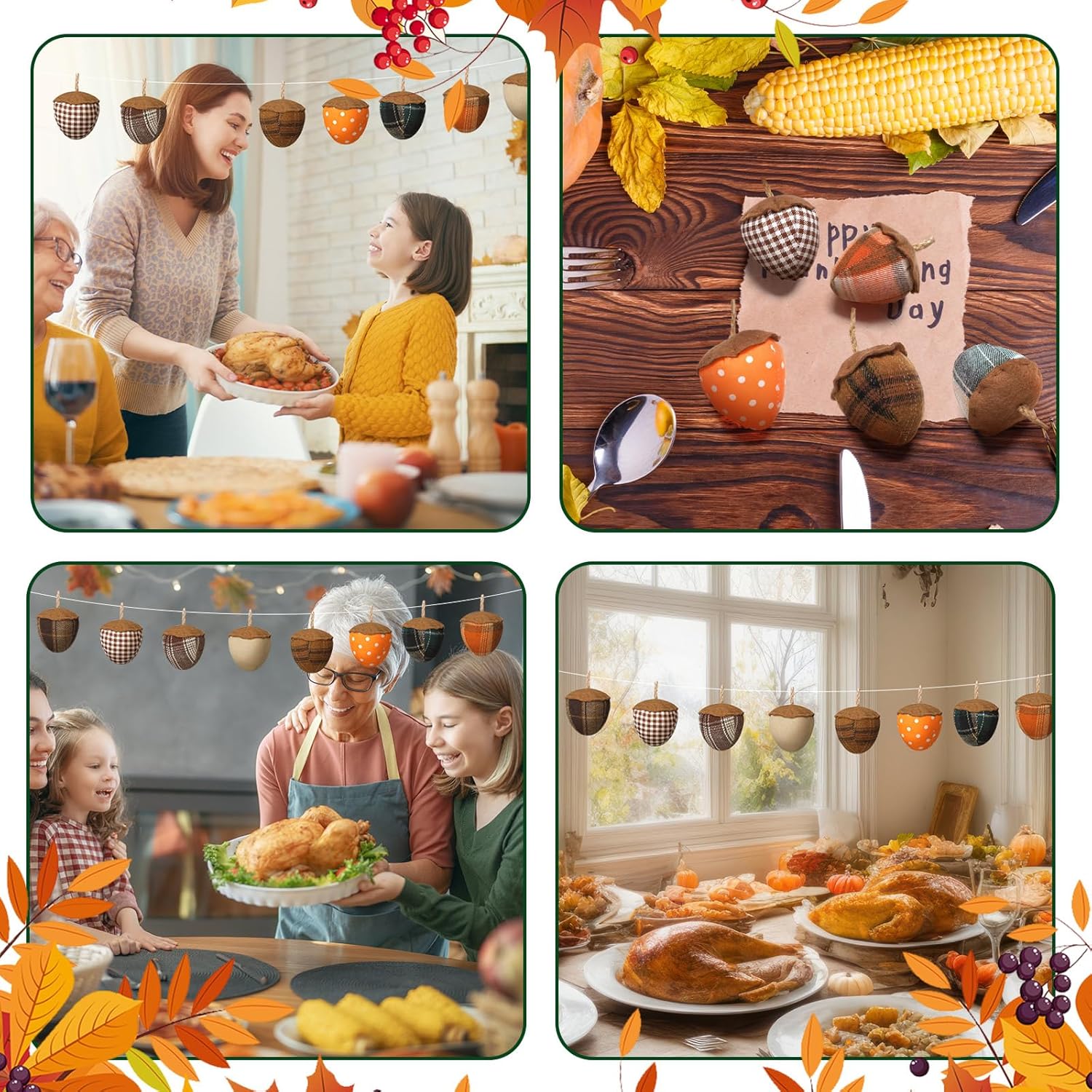 - Easy to Use: these autumn cute accessories are designed in acorn shapes, with ribbons on the top, so you can easily hang these small things; Whether decorating your trees, doors, windows, walls, fireplaces, stairs, windows, office spaces, doors, trees, and more, the flexibility of these decorations will complement any environment