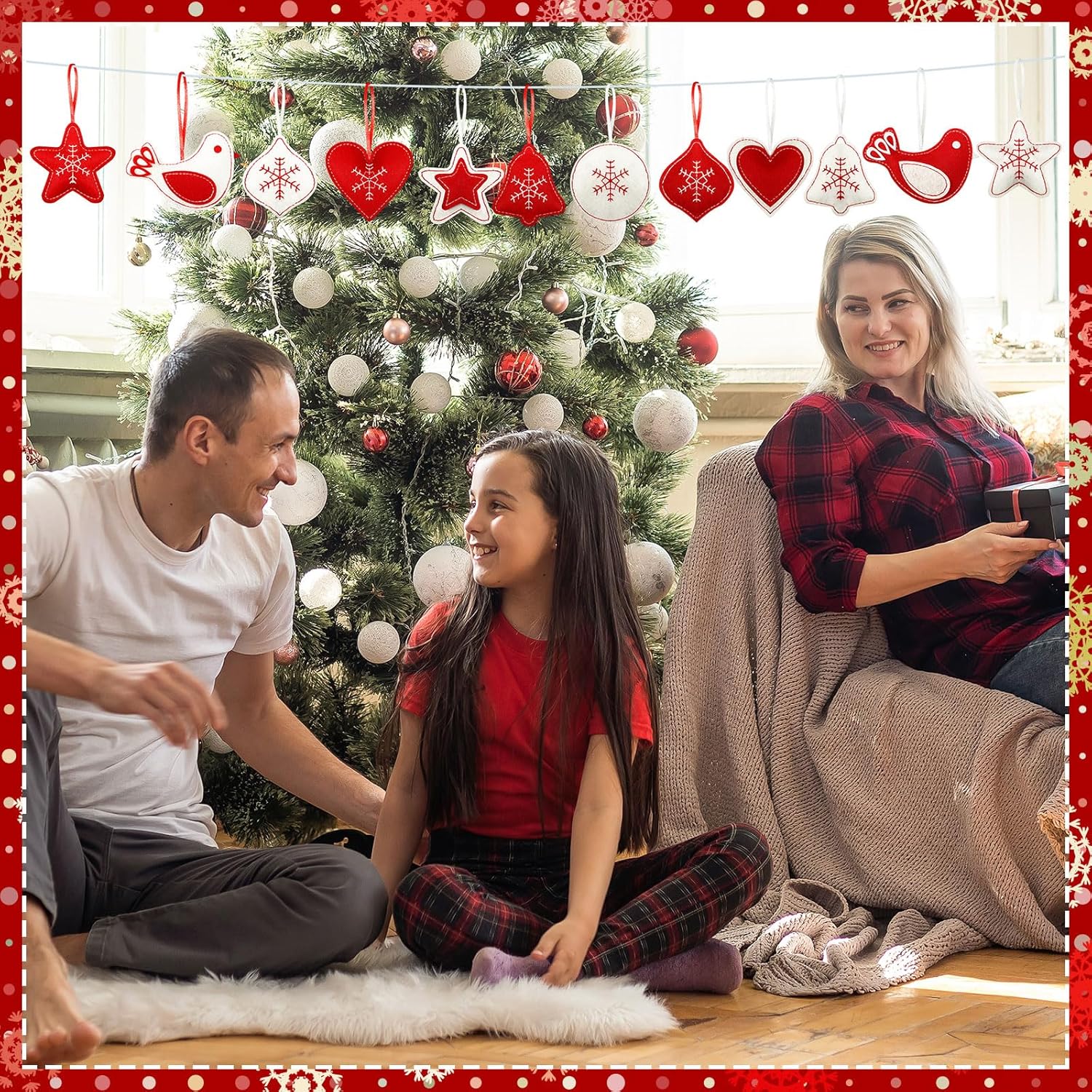 - Felt Christmas Ornaments 12 Styles: what you will receive are 12 pieces of 3D felt Christmas tree decorations with hanging loops, designed in 12 various styles, classic red and white Christmas ornaments, adorable and soft; Sufficient quantities and assorted types could fully meet your Christmas party tree decoration needs and satisfy your personal preferences