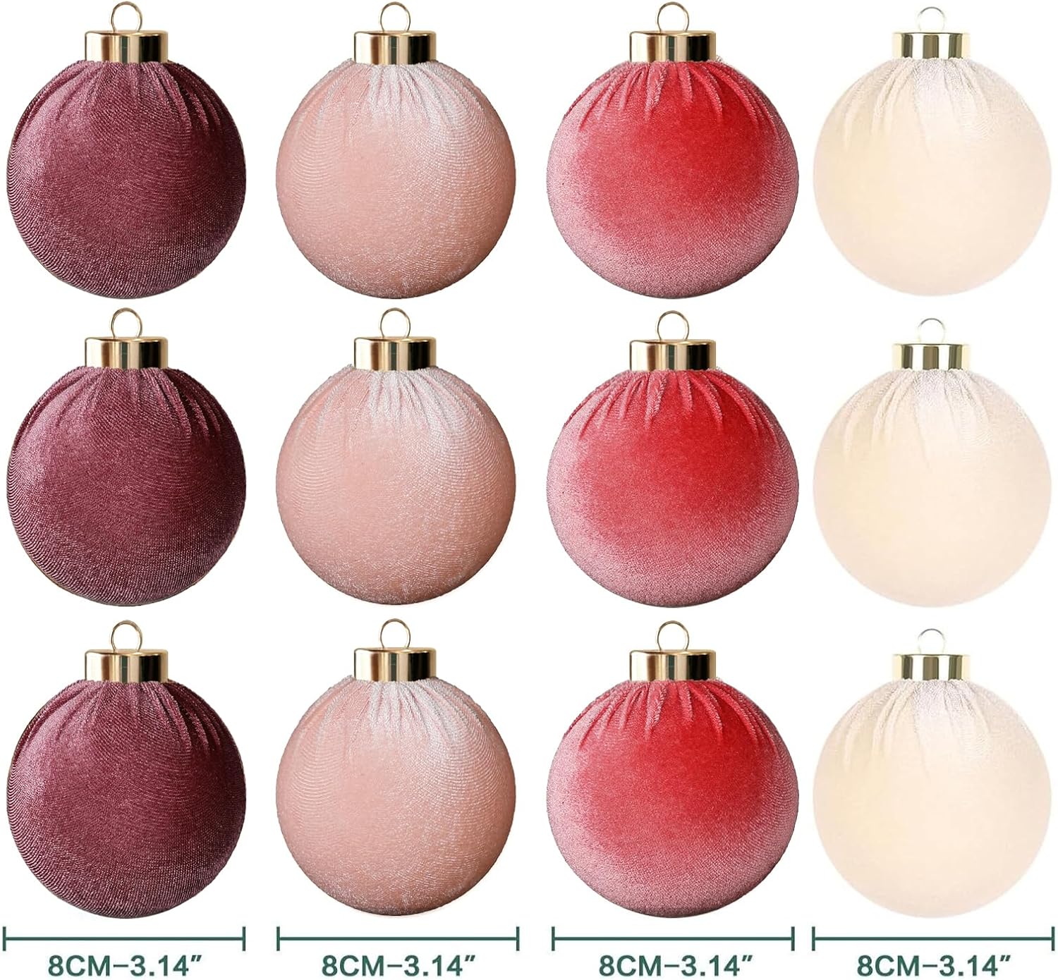 - ☀️CHRISTMAS ORNAMENT SET: The Christmas ornament set features 12 large velvet Christmas ornament balls, made of high-quality materials and with exquisite surface treatment. It has a classic and elegant design, making it perfect for decorating Christmas trees of various sizes and creating a warm and unique Christmas atmosphere for your home.