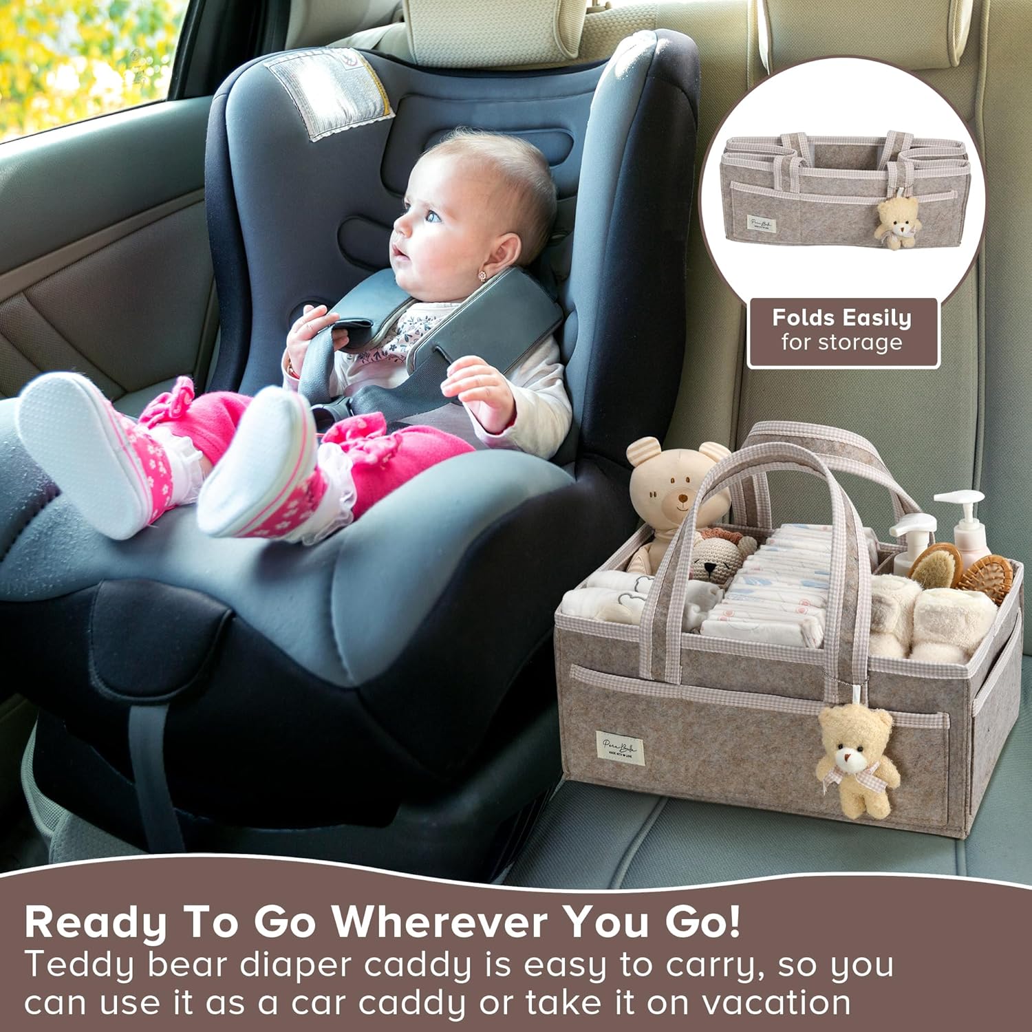 PeraBella XL Diaper Caddy Organizer With Handle, Baby Shower Gifts Basket Bag, Registry Search Must Haves Items, Newborn Girl Boy Nursery Storage Organizer, Baby Bag Essentials, Car Diaper Caddy Cart