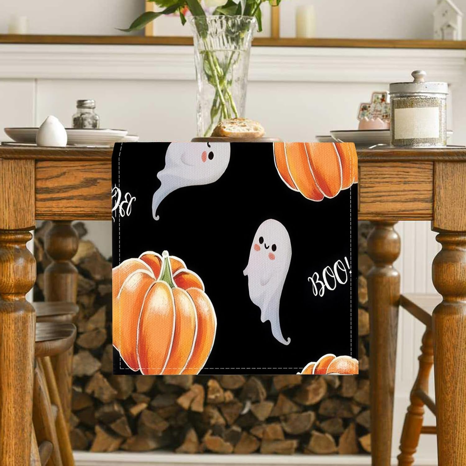 - Package Content: Includes 1 Halloween table runner (13x36 inches), printed with ghost and pumpkin patterns and classic Halloween elements, instantly turning your dining table into the focus of the holiday