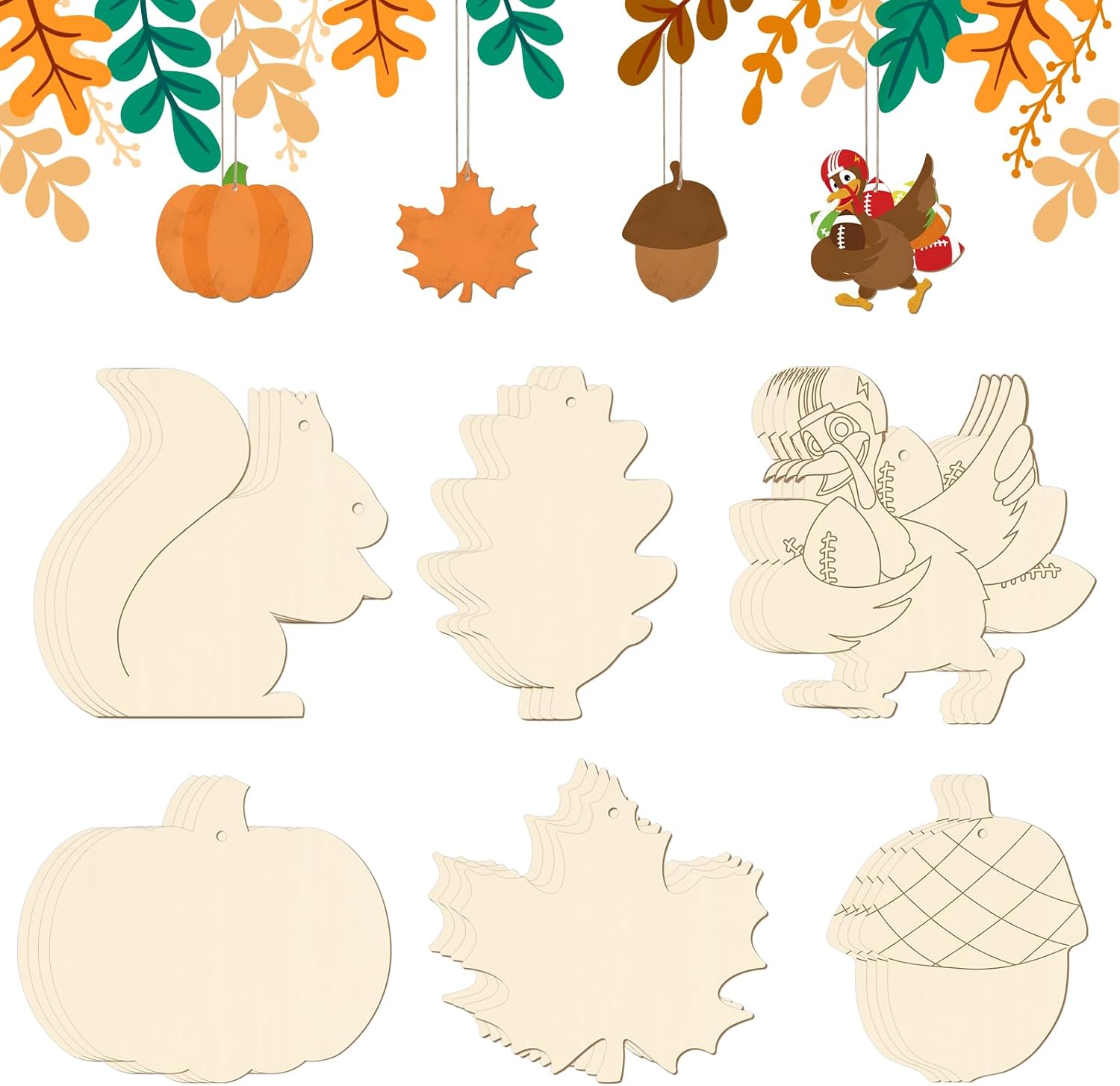 24 PCS Unfinished Wooden Thanksgiving Crafts, Pumpkin Turkey Shaped Hanging Ornaments DIY Wood Craft Cutouts for Thanksgiving Party Decor (Thankgiving)