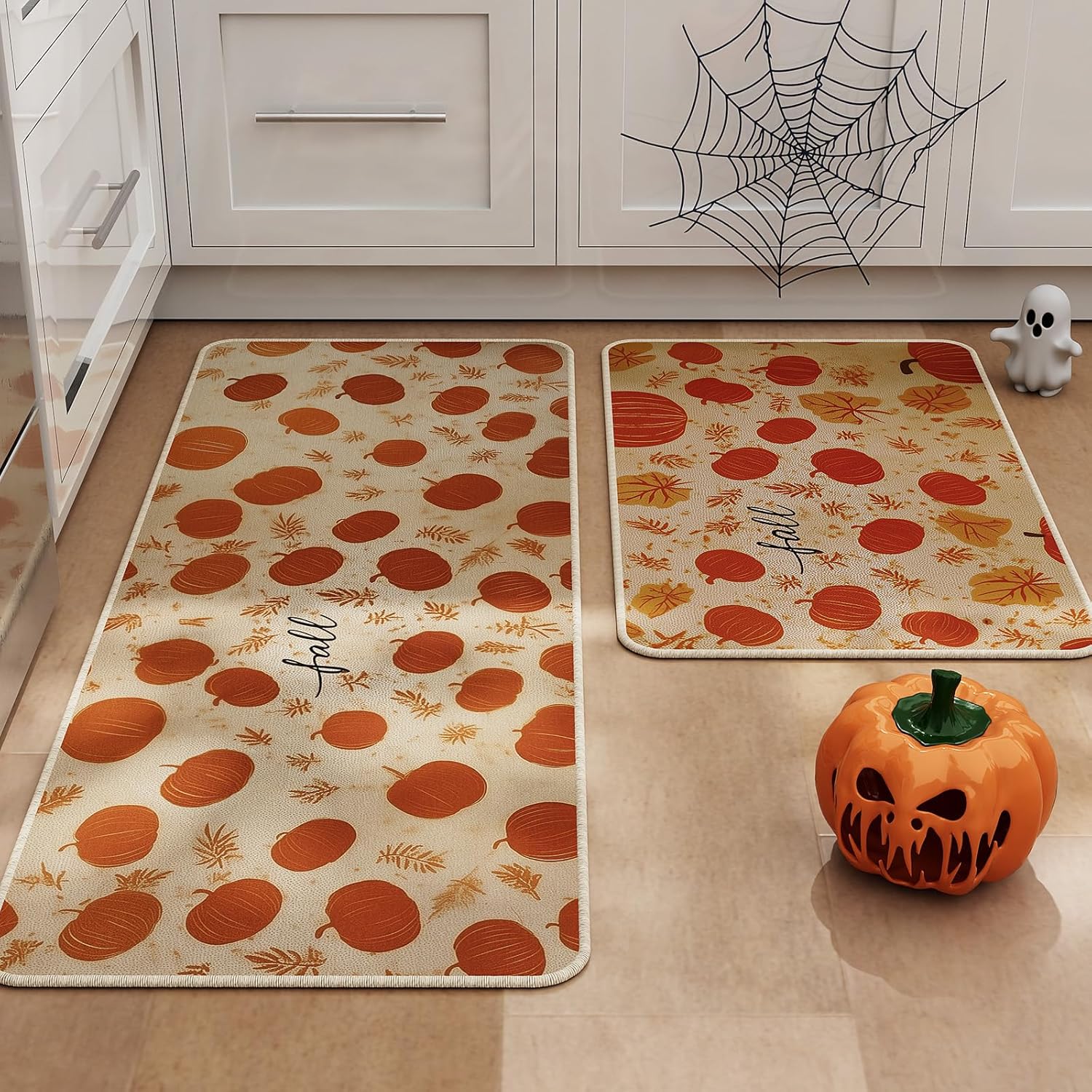 - 【Versatile Sizes for Every Space】Measures 17" x 29" and 17" x 47", our mat fits seamlessly in kitchens, dining areas, or entryways. Use the smaller size by the sink or stove, and the longer one for high-traffic spots to tie your Halloween theme together.Our stylish kitchen mats make a beautiful addition to your kitchen, dining room, laundry rooms,craft rooms and office spaces